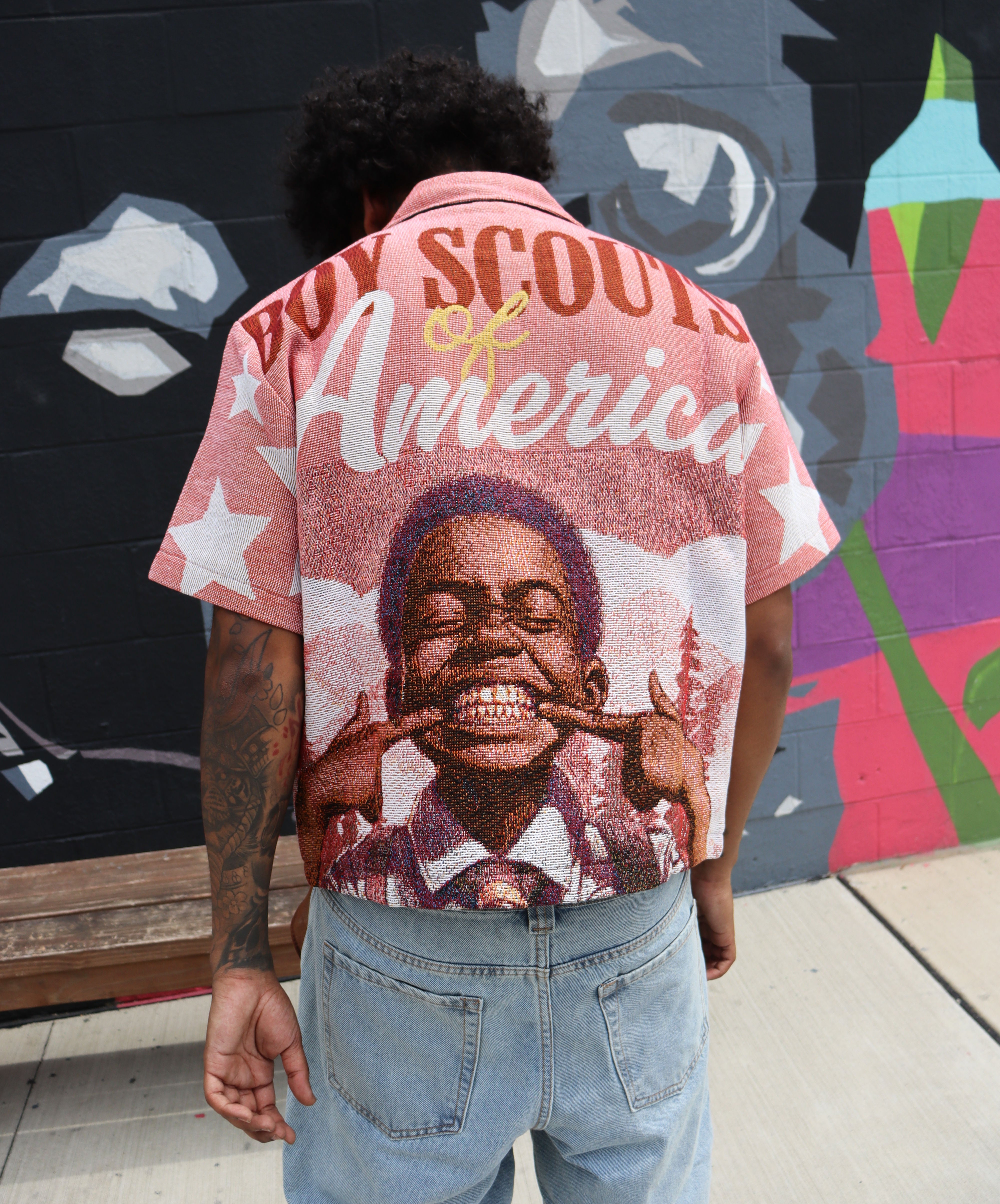 High quality Boy Scouts of America Handmade Tapestry Jacquard Work Shirt. Hand stitched, woven jacquard material,Bold solid colors. One of a kind pc. Only 65pcs made.