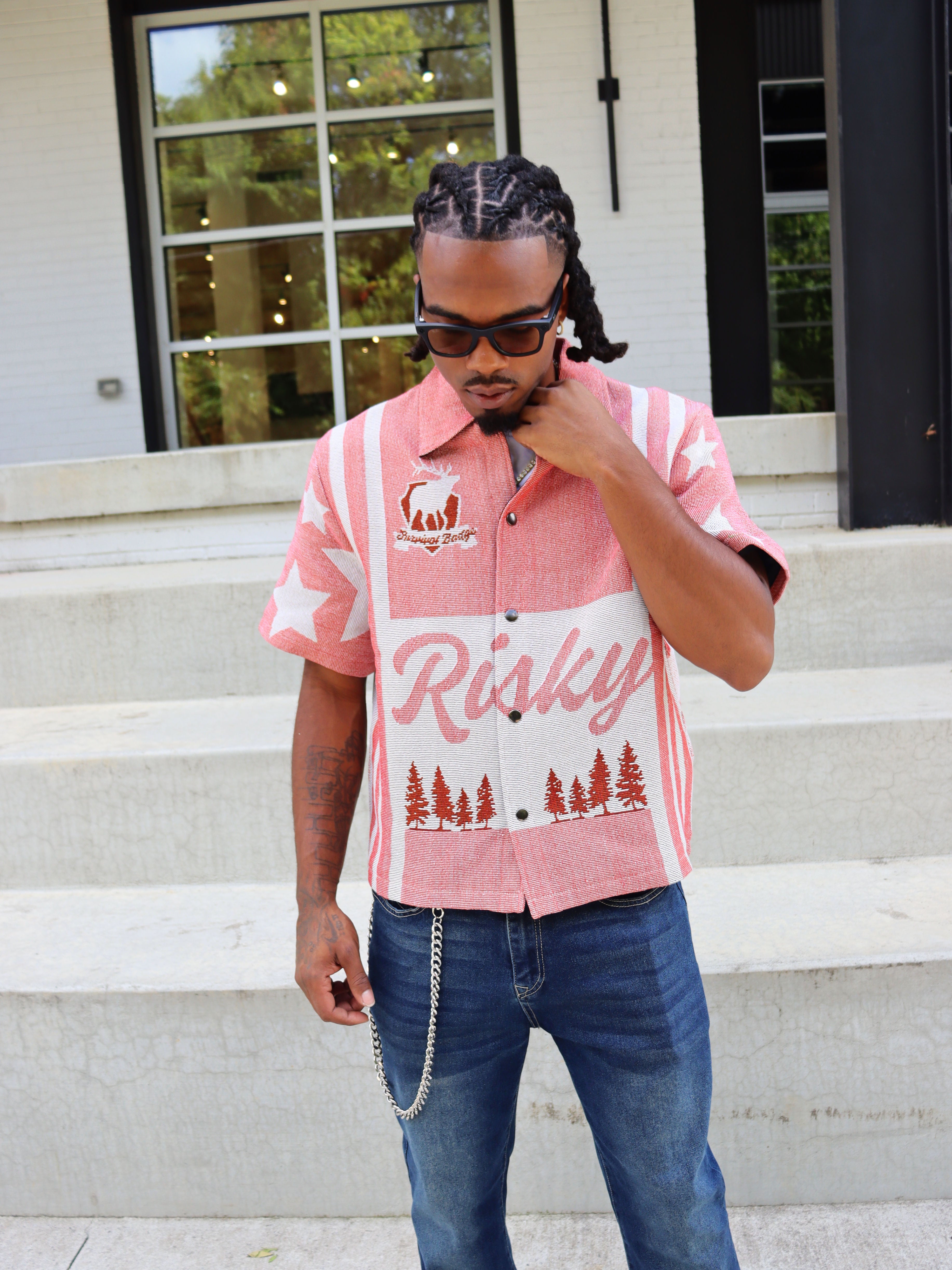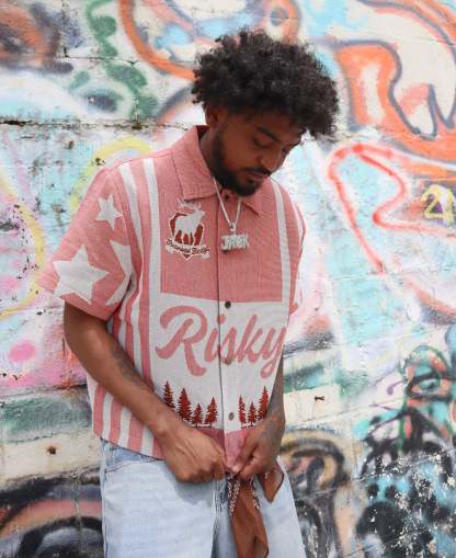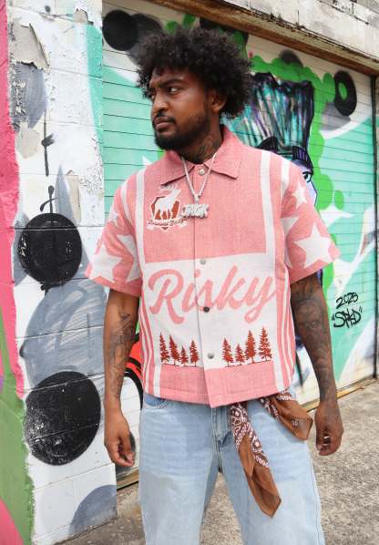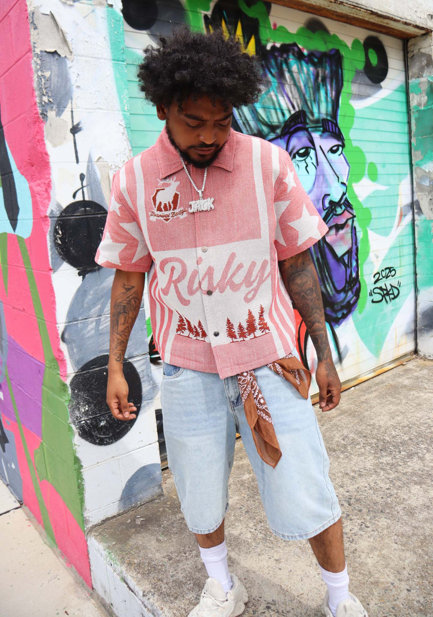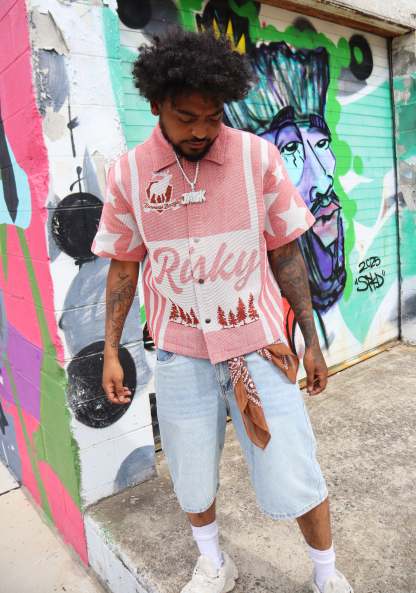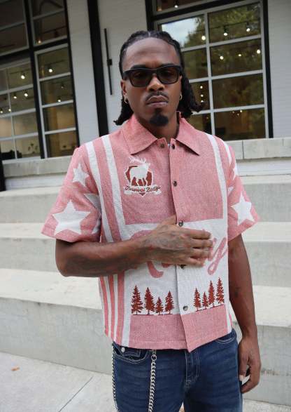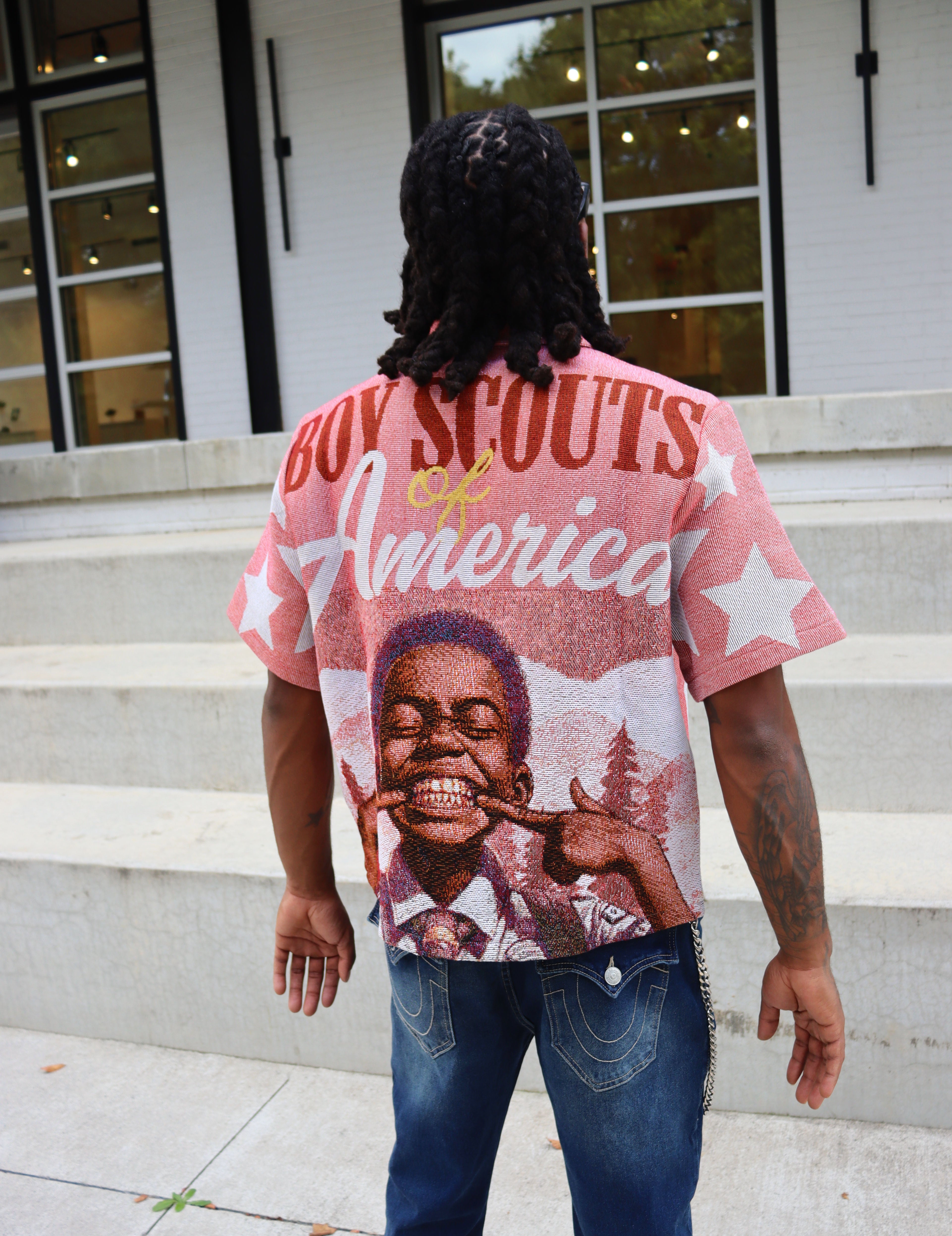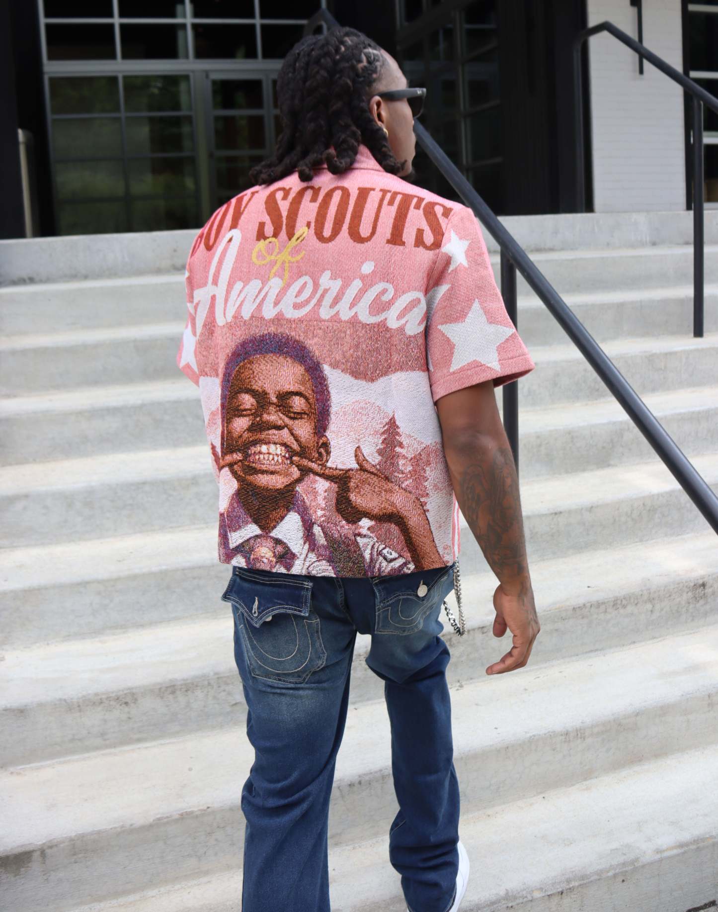 BOYS OF AMERICA HANDMADE TAPESTRY JACQUARD FABRIC WORK SHIRT PINK