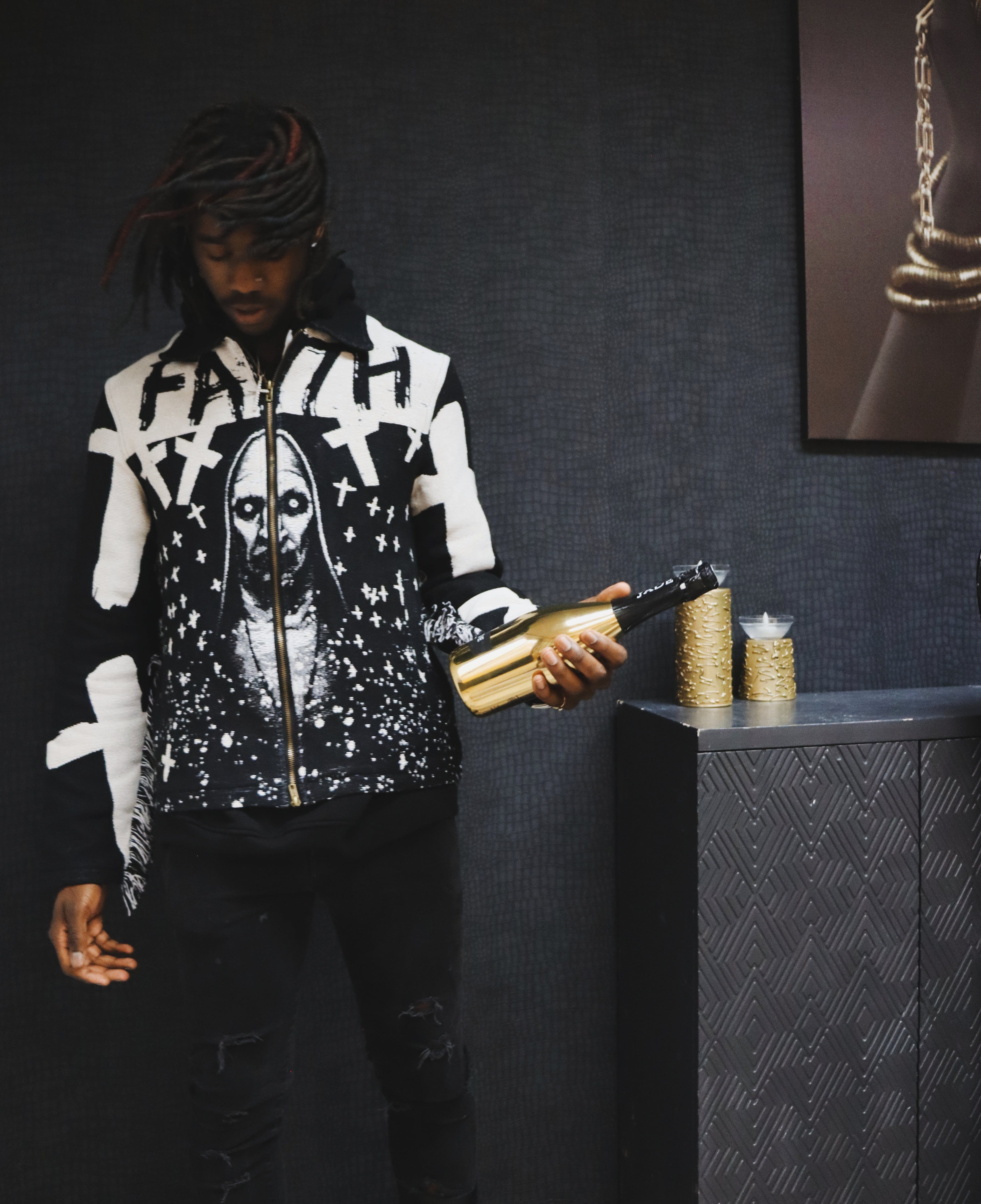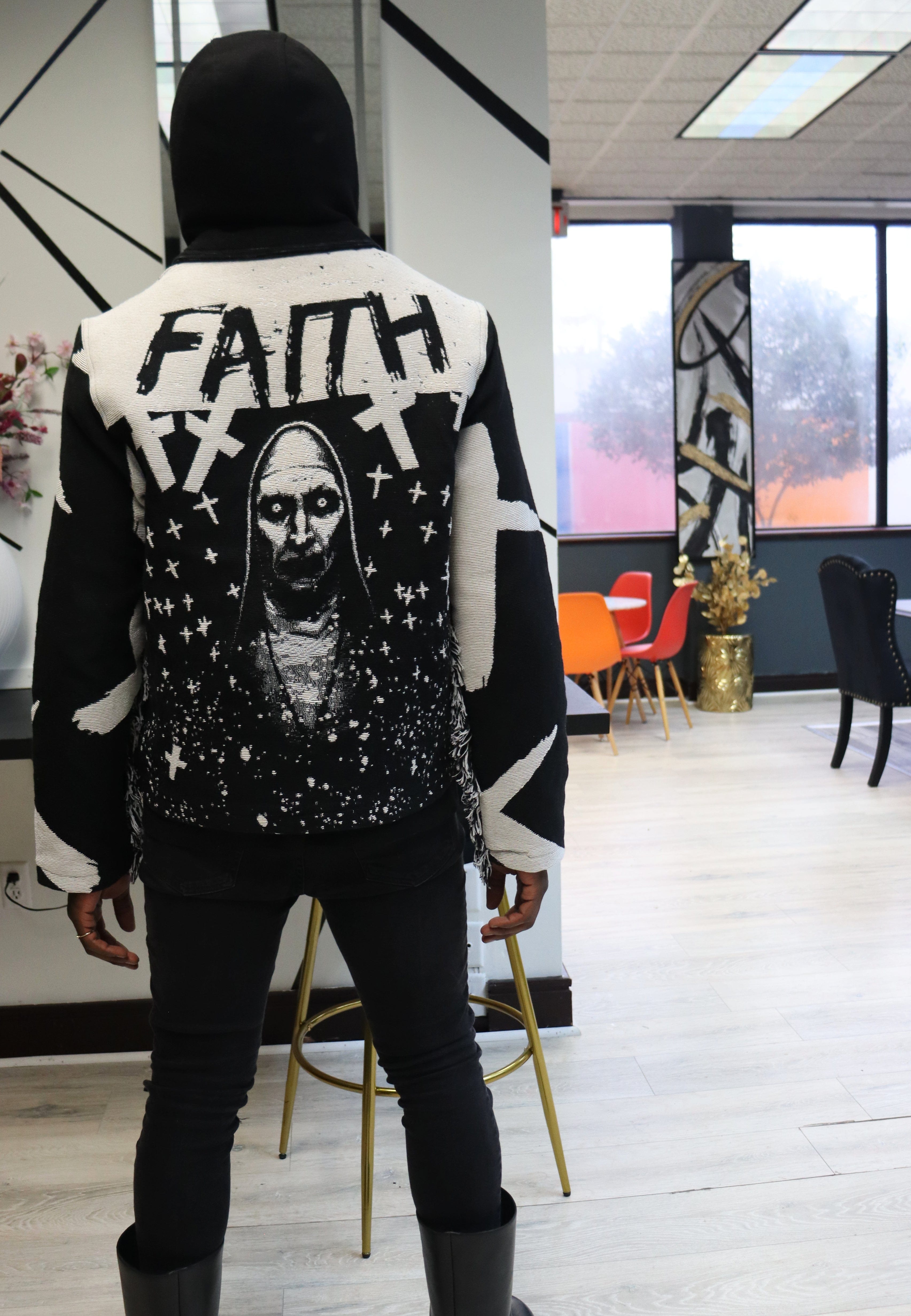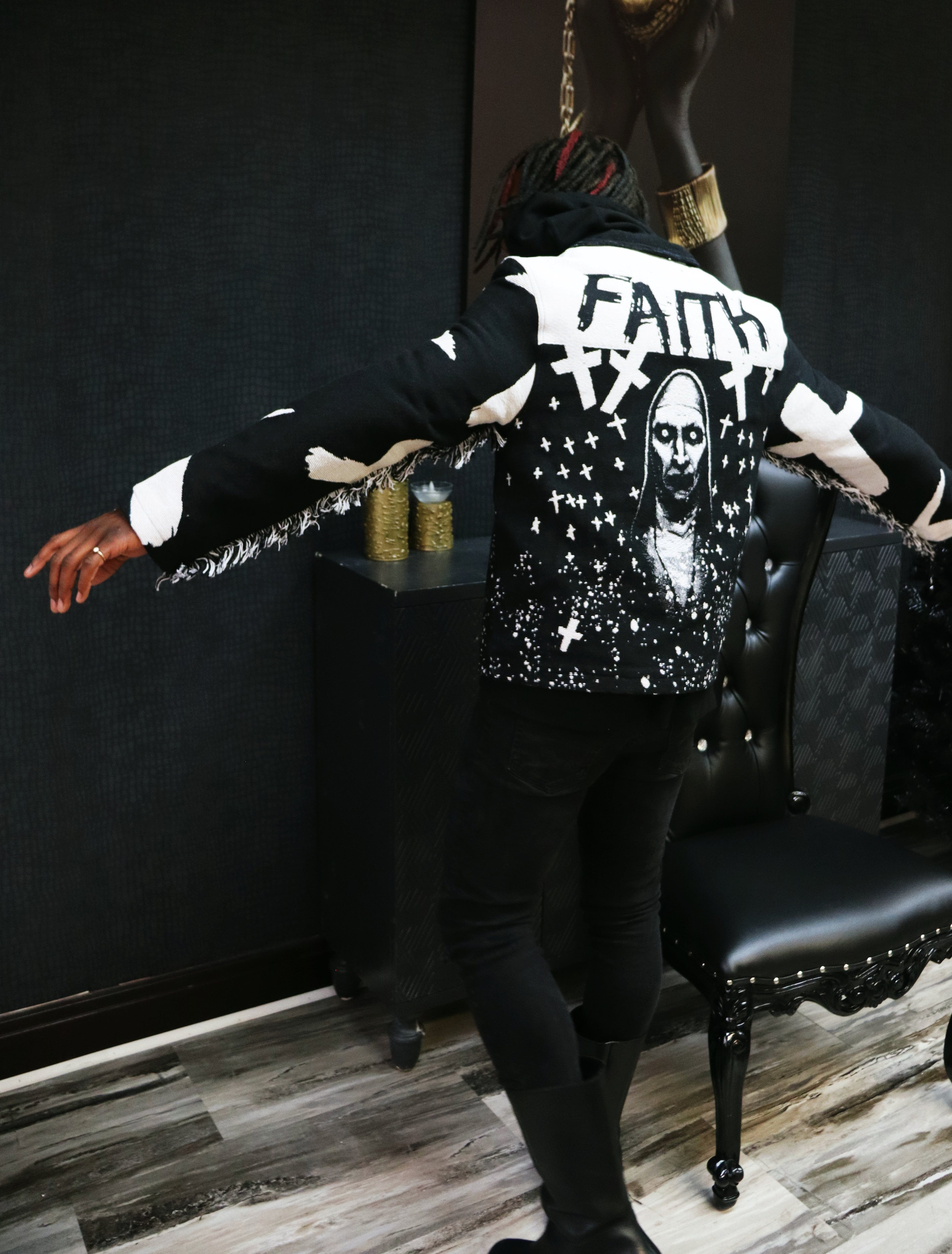 FAITH NUN HANDMADE TAPESTRY JACQUARD ZIPPERED JACKET