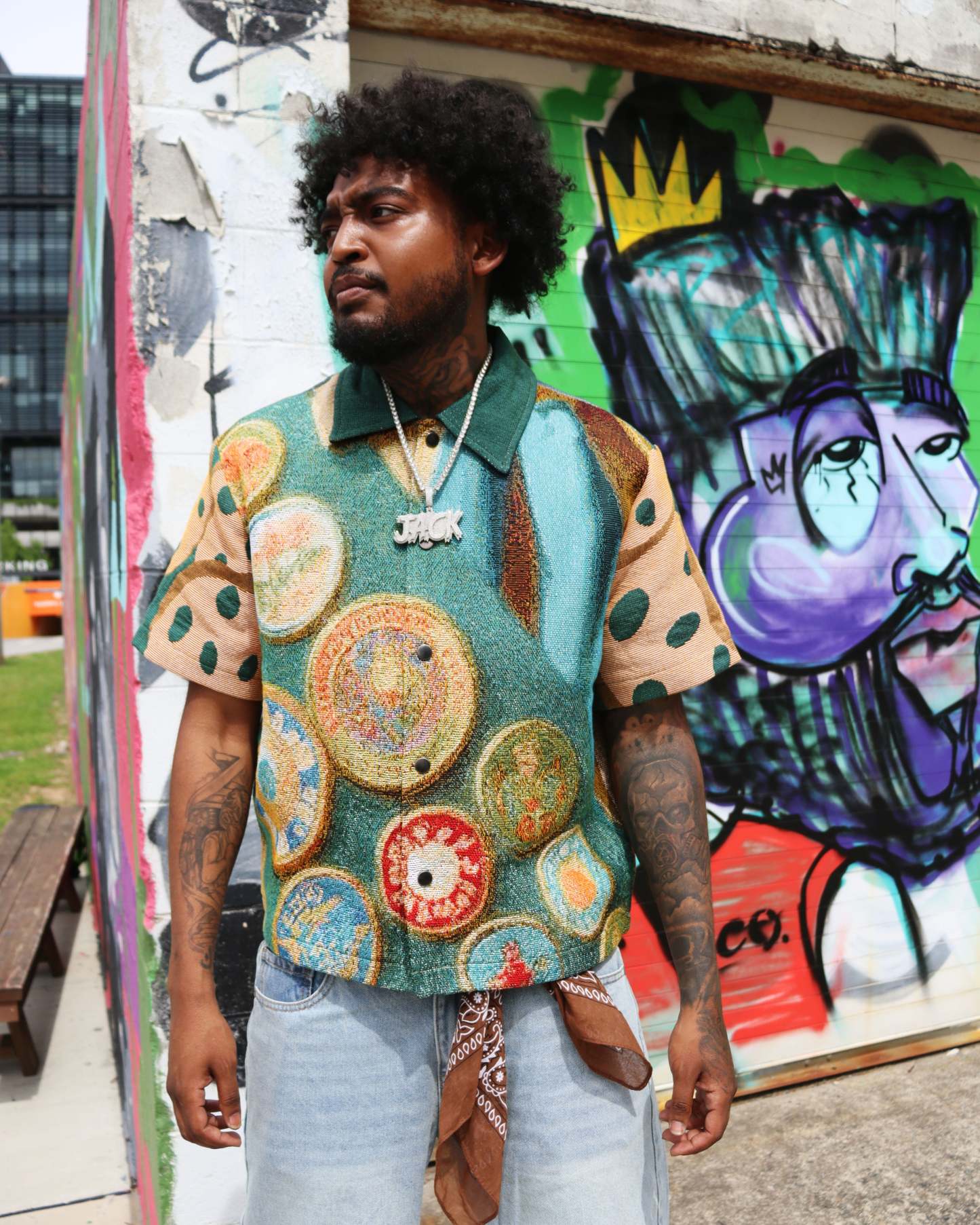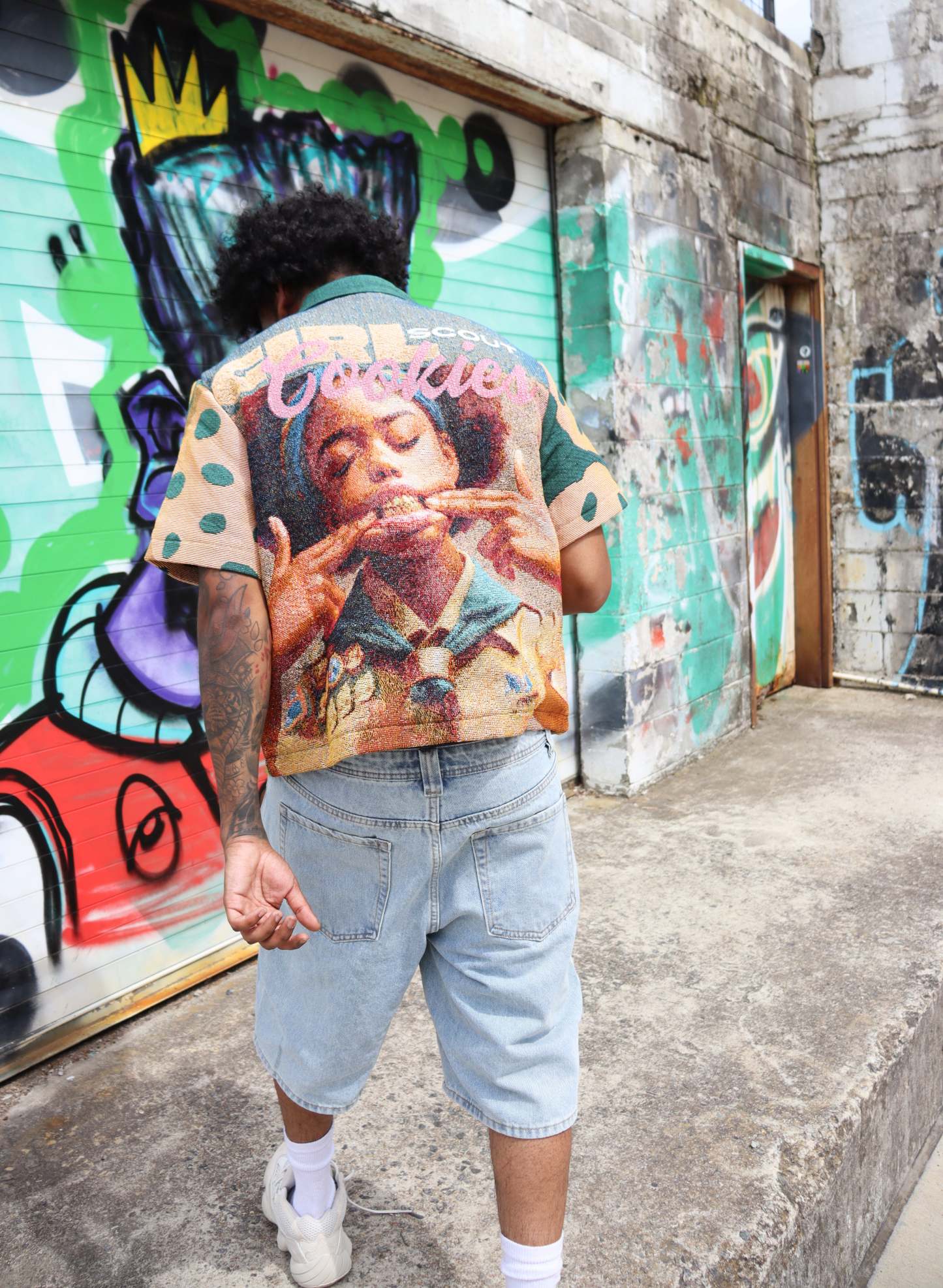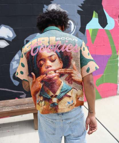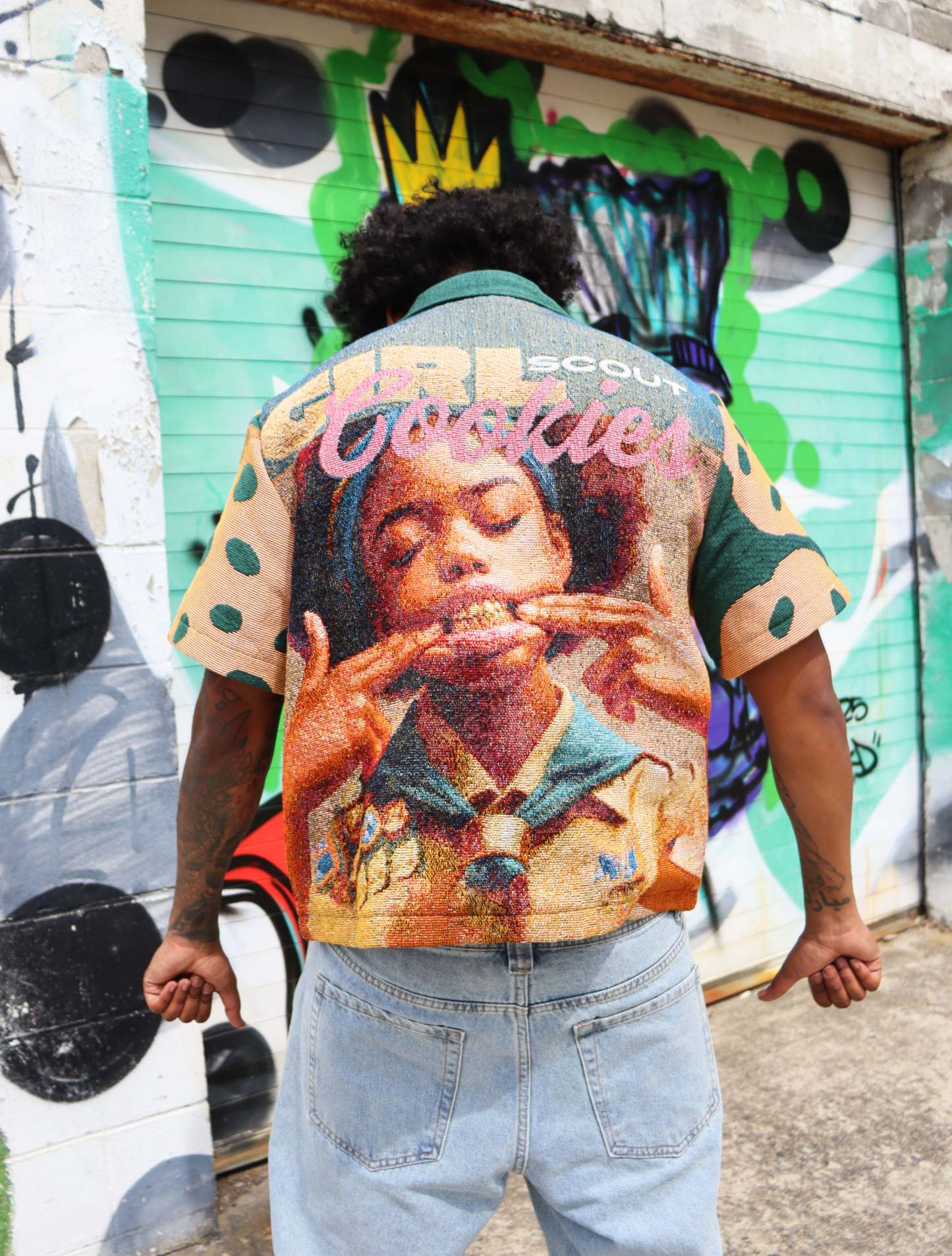 GIRL SCOUT COOKIES HANDMADE TAPESTRY JACQUARD FABRIC WORK SHIRT