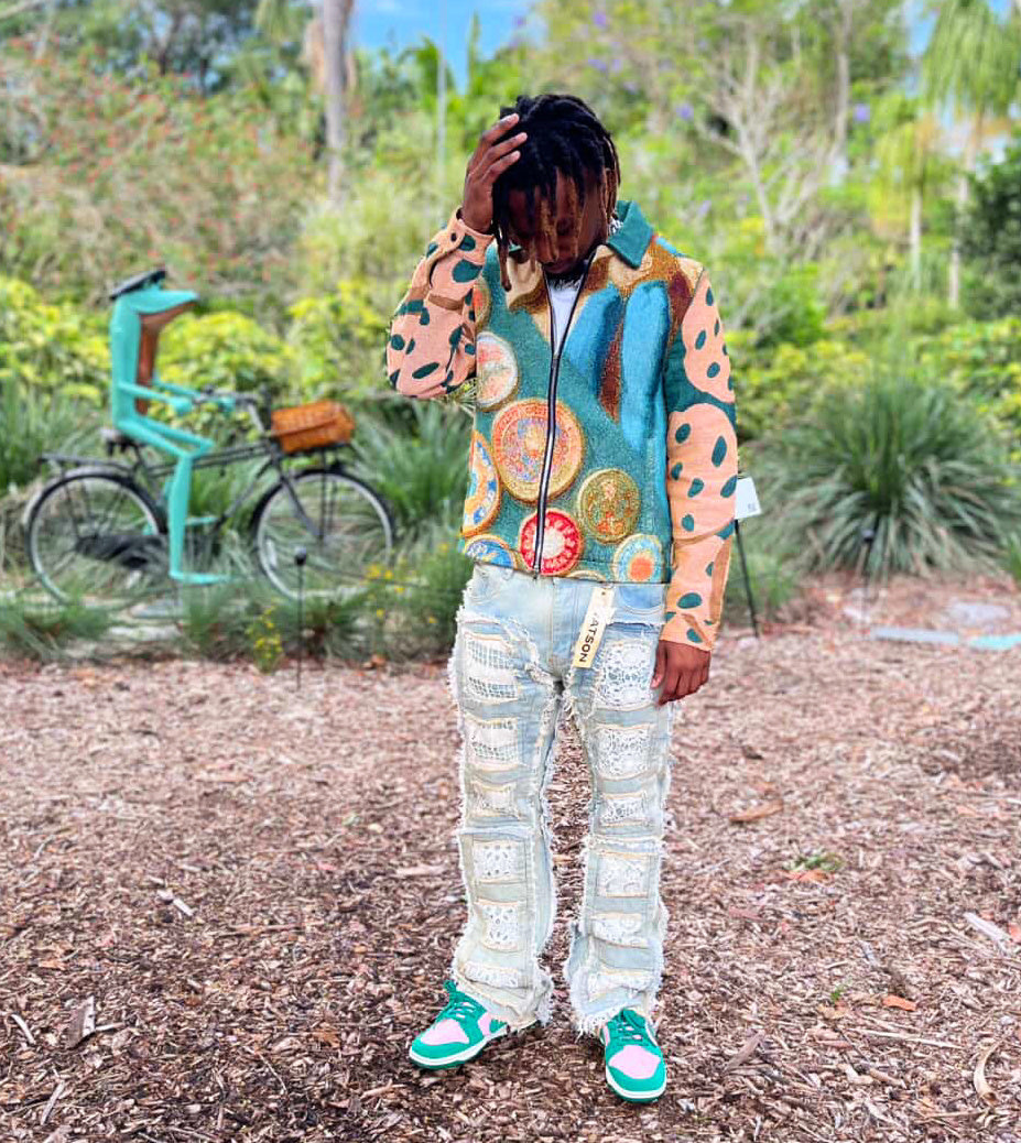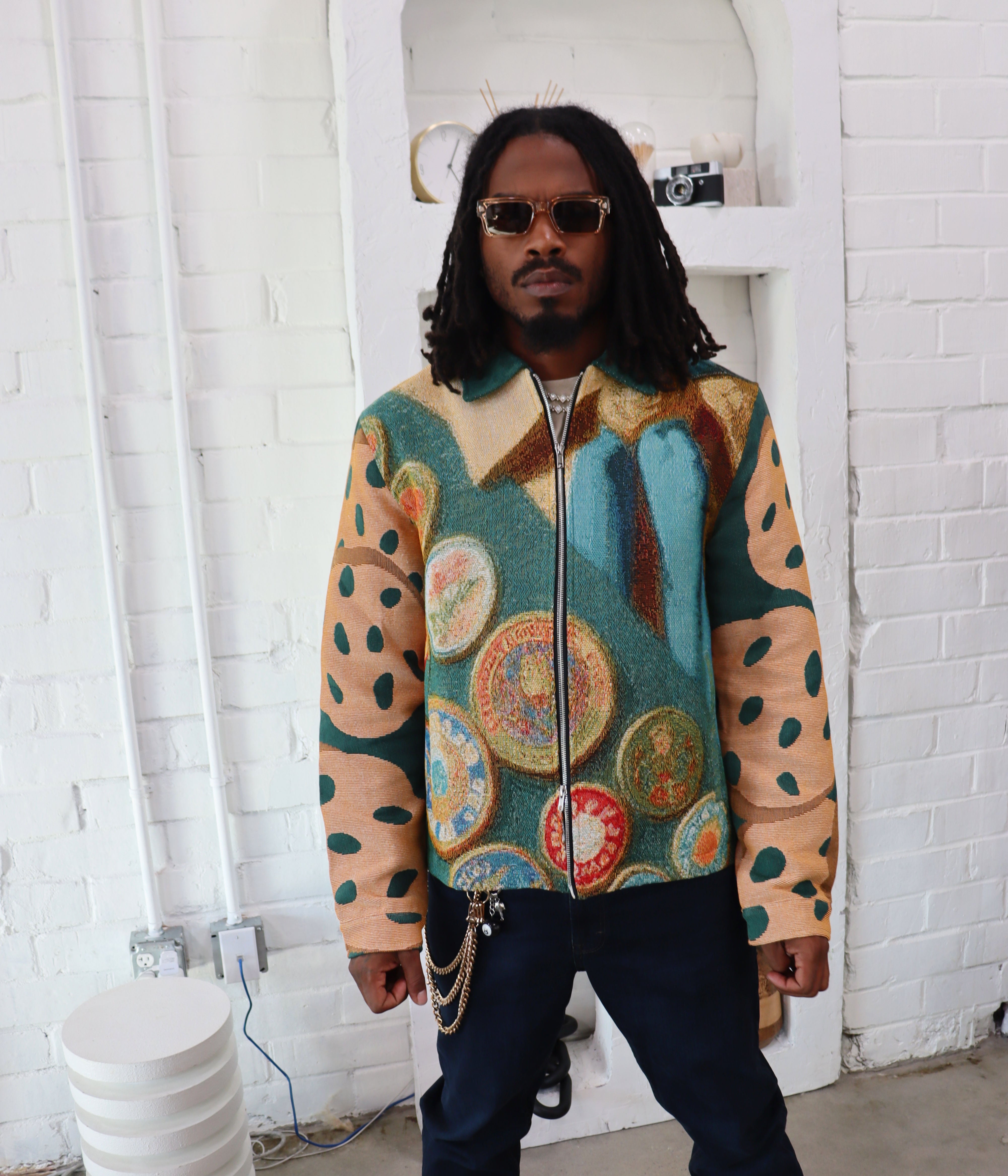 High quality Handmade Tapestry Jacquard Zippered Jacket. Hand stitched, woven jacquard material,Bold solid colors. One of a kind pc. Only 65pcs made.