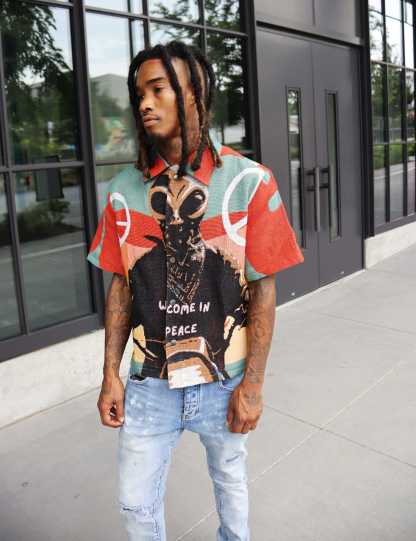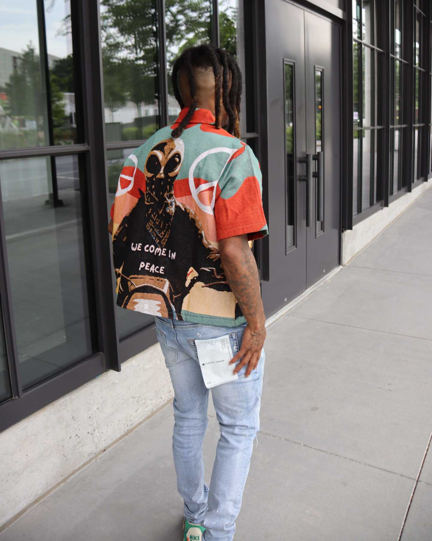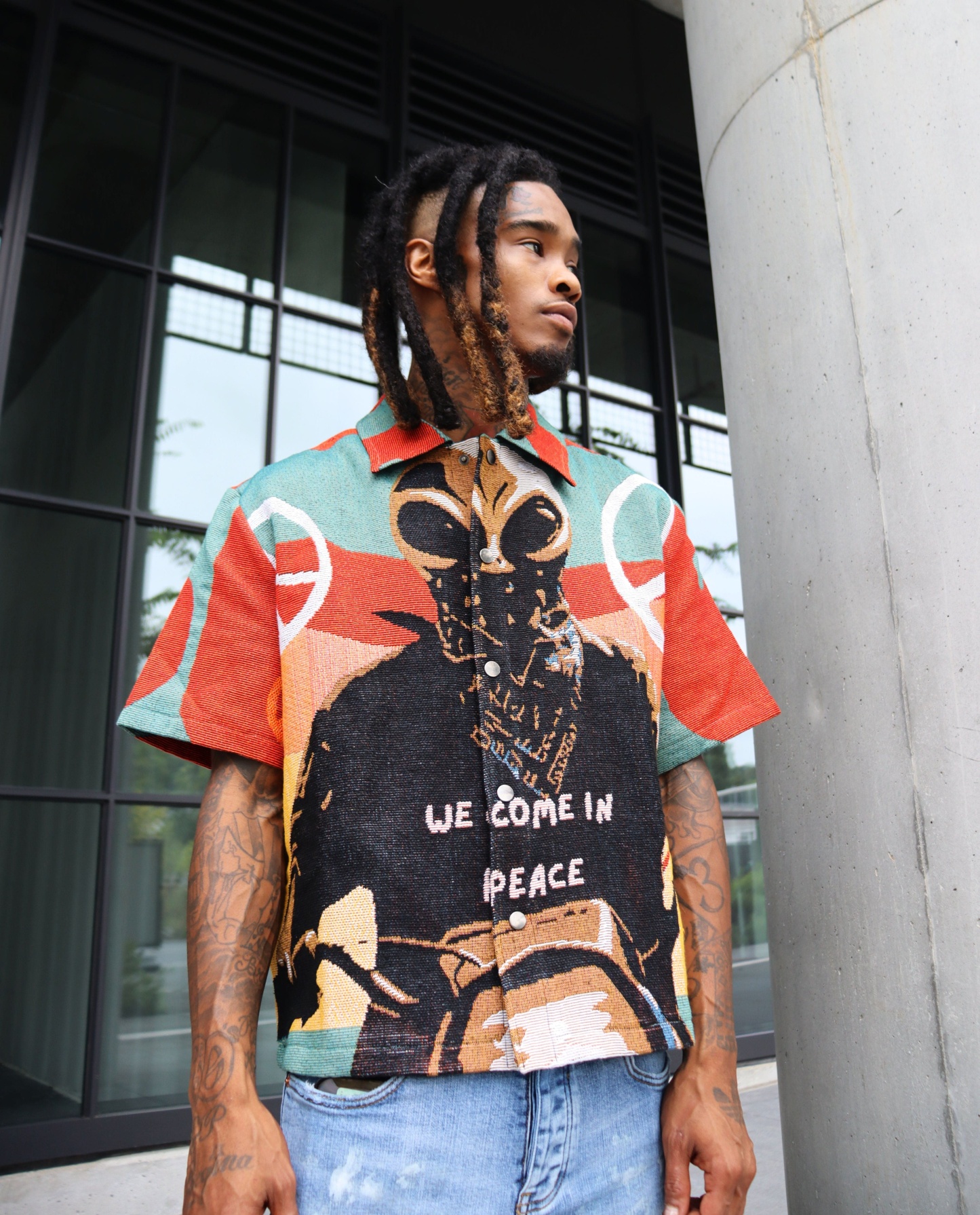 "WE COME IN PEACE" HANDMADE TAPESTRY JACQUARD FABRIC WORK SHIRT